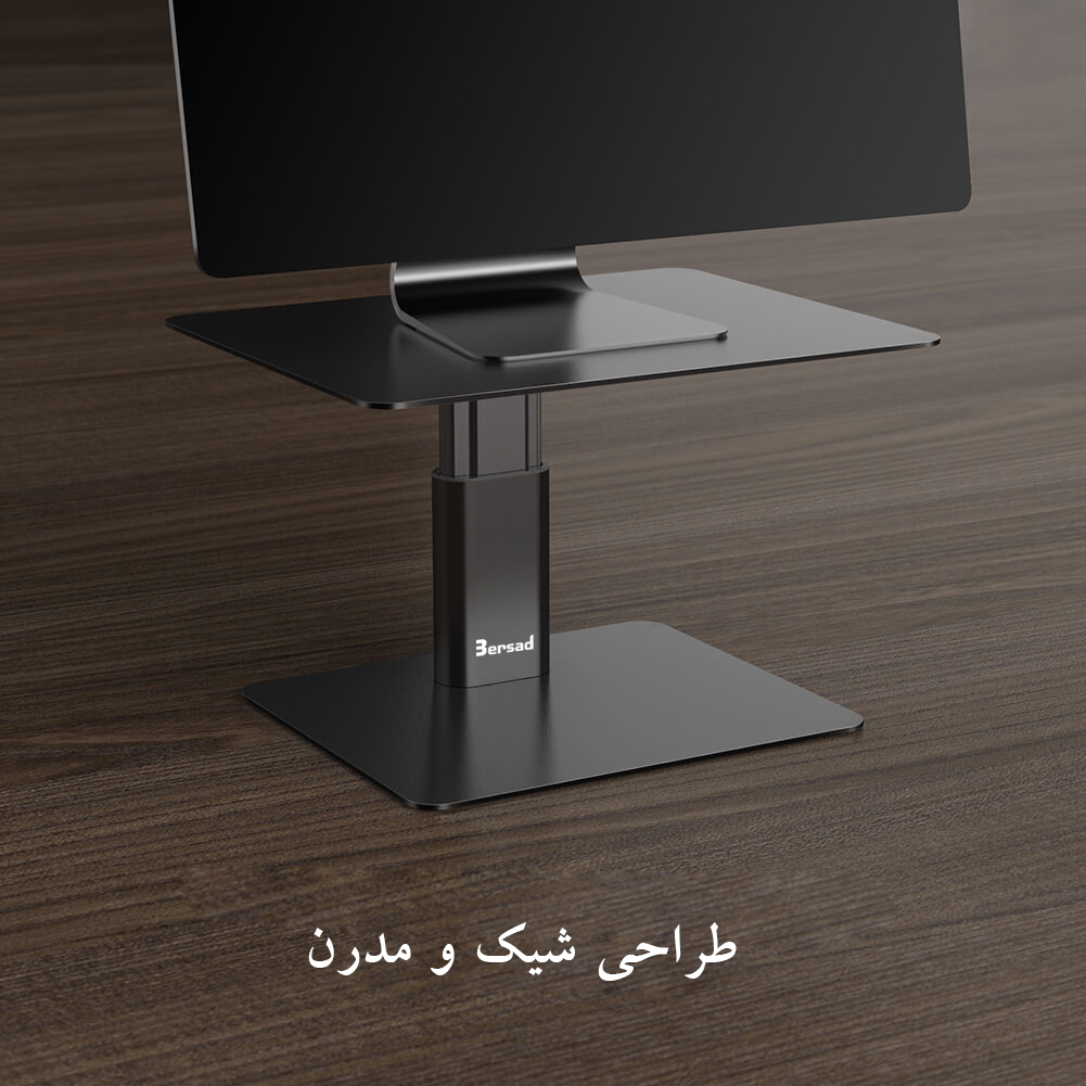 طراحی مدرن، ساختار مقاوم فلزی و قابلیت تنظیم ارتفاع، از مهمترین ویژگیهای این محصول است که به شما کمک میکند زاویه دید مانیتور را مطابق با استانداردهای ارگونومی تنظیم کنید و از خستگی گردن و فشار به ستون فقرات در استفادههای طولانیمدت جلوگیری نمایید.
